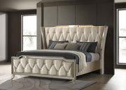 Lorient LED Upholstered Wingback Bed Ivory and Camel