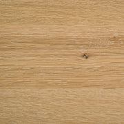 This rectangular dining table blends rustic charm with modern simplicity for a fresh take on farmhouse style. Its washed oak finish brings out the beauty of the knotty oak veneer top, framed by solid wood edges for everyday durability. The trestle base features stout, rounded posts that offer stability and sculptural appeal without the fuss of ornate details. Built from solid rubberwood and engineered wood, this piece is designed to stand up to busy family life while grounding the dining space with effortless warmth.