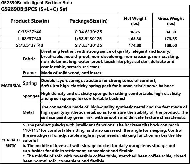 SKU GS2890B(3PC C+L+S)