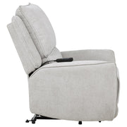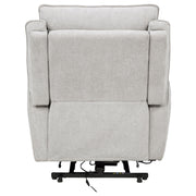 Sink into indulgent comfort with this power recliner, tailored for quiet moments and deep relaxation. Draped in soft dove grey chenille, it features sculpted cushions and gently rounded arms for an inviting silhouette. At the touch of a button, the seat extends smoothly, offering effortless recline. A built-in anti-pinch safety function halts motion when resistance is detected, making it a haven of both comfort and reassurance.