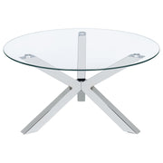This contemporary coffee table set refines modern interiors with its sleek, minimalist aesthetic. The round tempered glass tops provide an airy elegance, supported by an electroplated chrome frame crafted from heavy gauge steel. Designed for versatility, these tables function as accent tables, occasional tables, or centerpieces in any living space. The polished finish enhances the refined look, making this set a sophisticated yet functional addition to any contemporary living room.