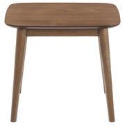 Create a subtle vintage flair with this mid-century modern three-piece occasional set, complete with a coffee table and two end tables. Keep books, table lamps and more on this collection of essential living room furniture pieces. Designed with a natural tone walnut veneer finish throughout, this collection offers a warmth to a space. Flared and tapered legs push the retro-inspired vibes, while a chamfered edge of each top offers a softer, more graceful look and feel. Arrange this coffee table and end table set in a contemporary or bohemian-inspired living room for a playful, elegant aesthetic.