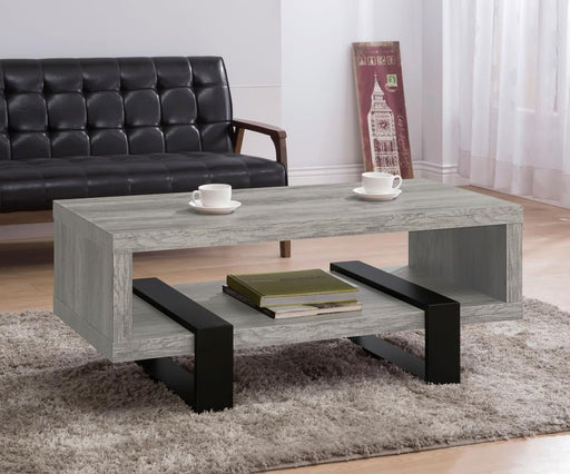 CoasterExperience a modern aesthetic with this rectangular coffee table that combines style and functionality. The grey driftwood finish highlights realis...
