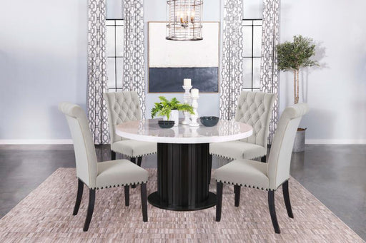 CoasterThis elegant, contemporary, five-piece dining set completes formal dining experiences with a round, white, cultured marble, and rustic espresso ped...