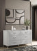 • Six-drawer dresser in white high gloss finish with geometric ribbed drawer front textures