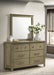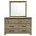 • Six-drawer dresser with mirror pairs clean structure and subtle rustic appeal