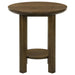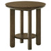 • Round end table with sculpted legs and shelf for functional and balanced living room use
