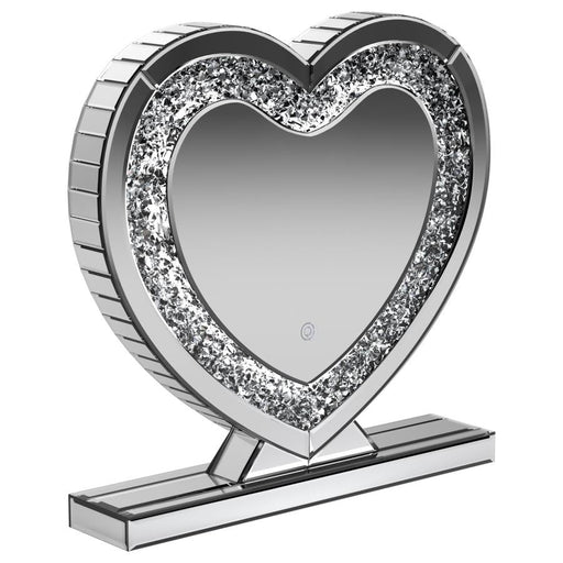 CoasterThis heart-shaped table mirror blends glam style with practical lighting, perfect for vanities or dressing areas. The mirrored frame features an in...