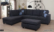 Seccional de 2 piezas y otomana de estilo de transición en lino gris oscuro